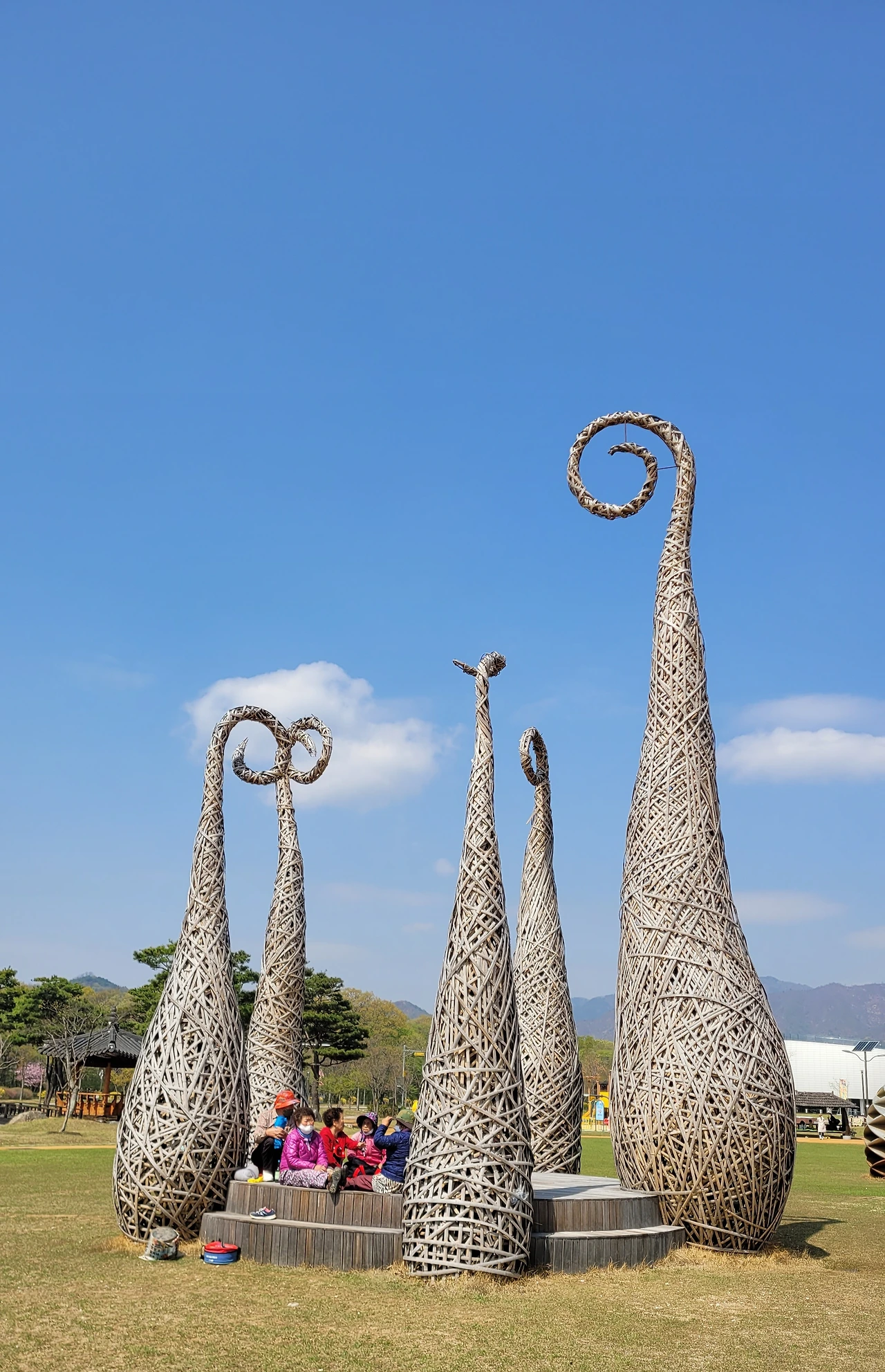 세 시간 반을 달려 함양 상림에 도착했다. 첫인상은 잘 정돈된 느낌이었다. 너른 광장에 특이한 조형물이 눈에 띄었다. 함양 산삼을 형상화했다고 한다. 마치 나물로 먹는 고비의 새순이 돋아나는 것 같은 이미지였다. 입구에 있는 박물관과 문화회관을 둘러보고 블로그 이웃을 만나게 되었다. 형님은 근무 중이어서 저녁에 만나기로 해서 우리끼리 시간을 보내야 했기 때문이다.