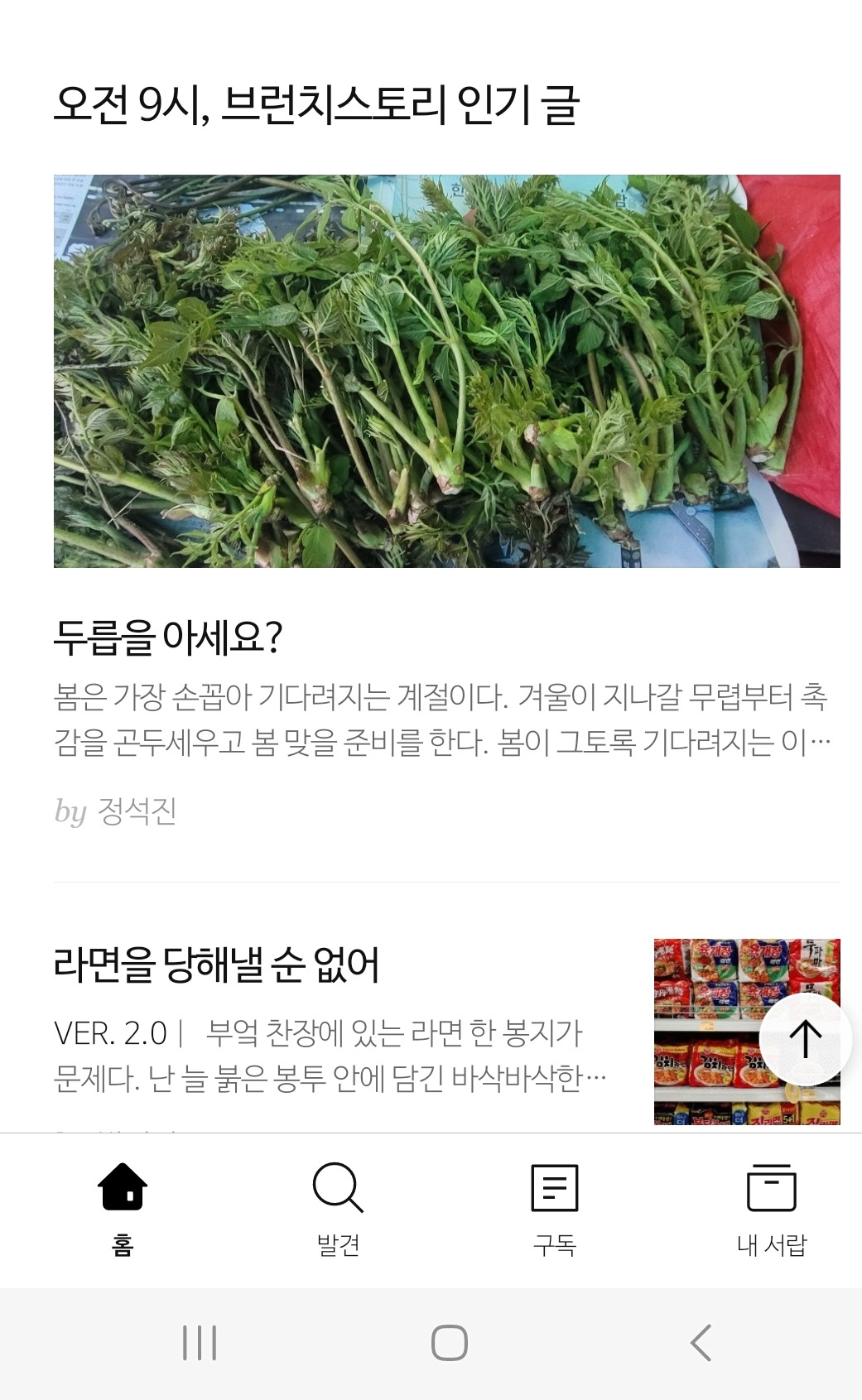 그러다 연이어 또 하나의 글이 부상했다. '두릅을 아세요?'라는 글이 또다시 조회수가 가파르게 오르는 거다. 떨리는 마음을 금할 수 없었다. '설마 또 메인에 게시된 것인가?' 그런데 아무리 찾아봐도 내 글은 다음에서 찾을 수가 없는데도 조회수는 멈추지 않아 또다시 채팅방에 문의를 했다. 다음과 브런치에 메인 글이 되었다는 소식이었다.