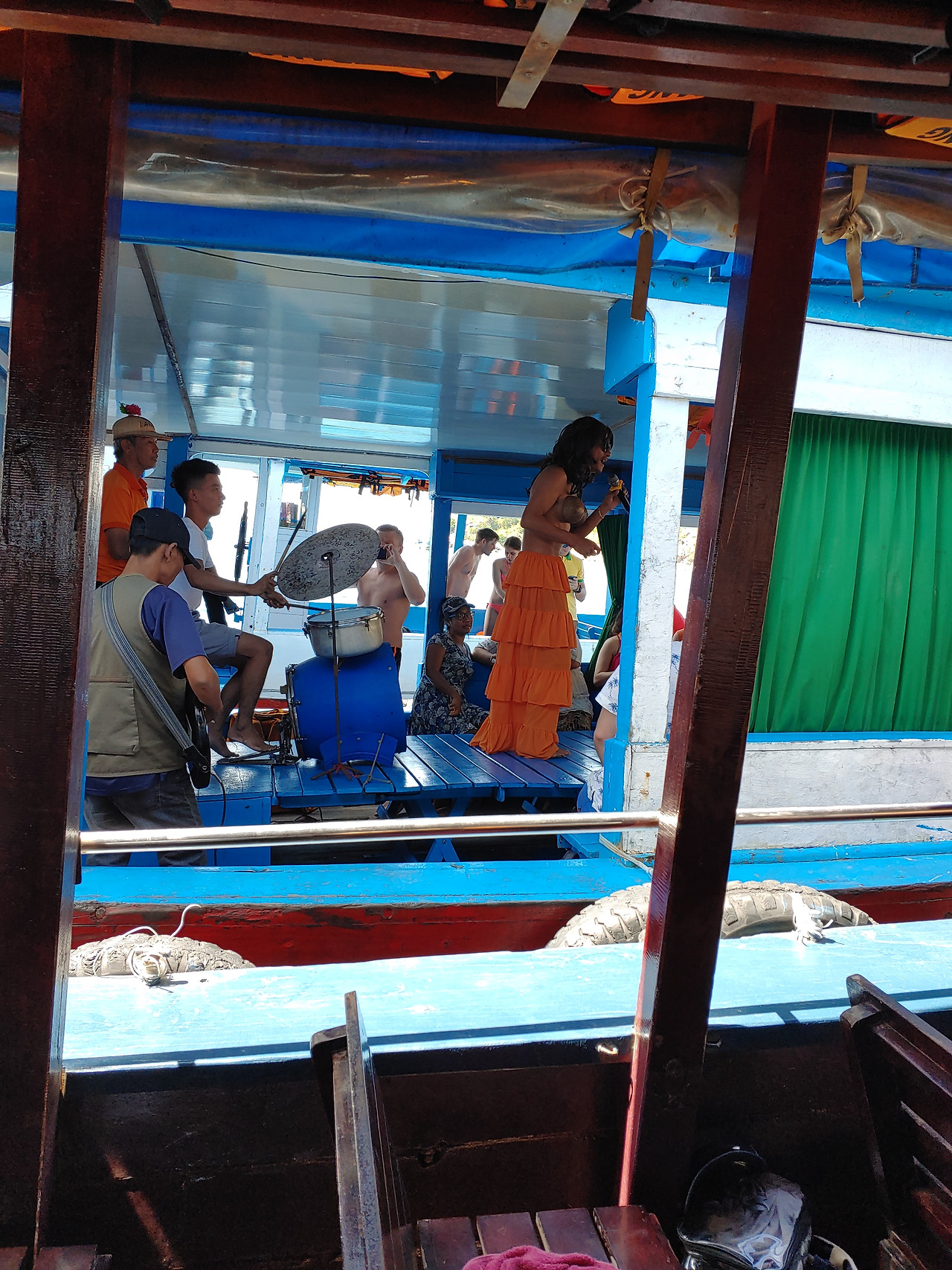 현지인들이 냄비 같은 드럼을 치면서 놀고 있었다.