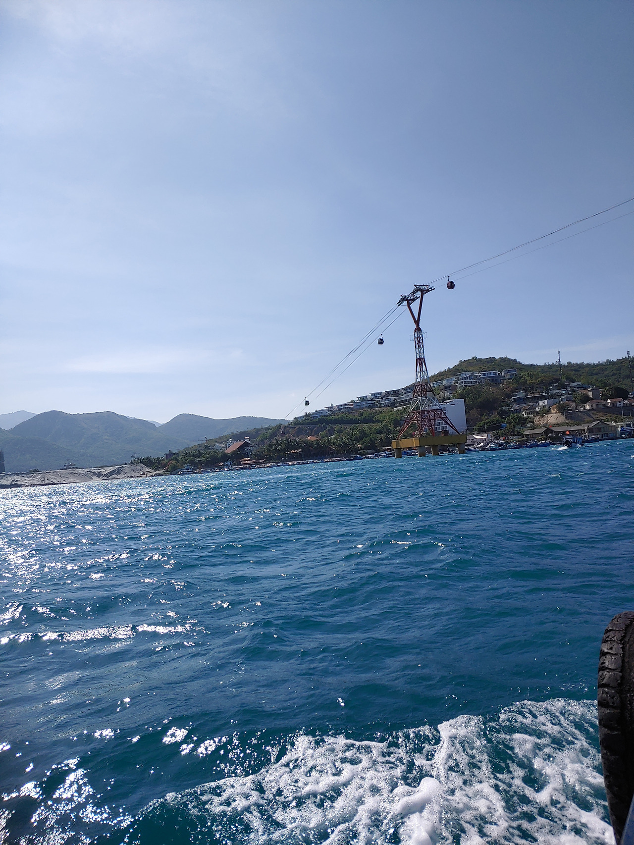 저 멀리 '빈펄 섬'을 오가는 케이블카가 보인다