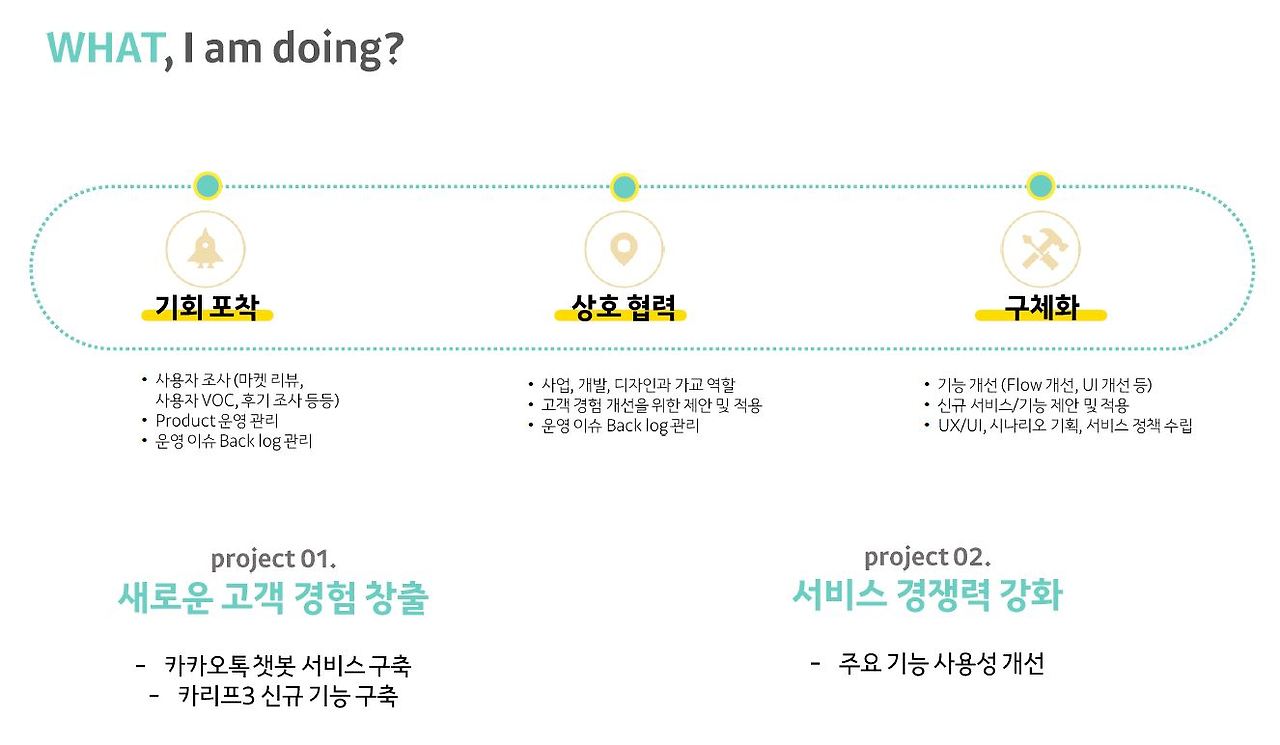 “아무래도 처음 시작하기 때문에, 누군가를 보고 배우고 싶었지만 그 부분에 대한 아쉬움이 있었어요. 두 번째로 앱서비스 기획뿐 아니라 상품 기획과 전략 기획 같은 좀 더 넓은 범위의 기획까지 고민해보고 싶다는 생각이 들었죠.”