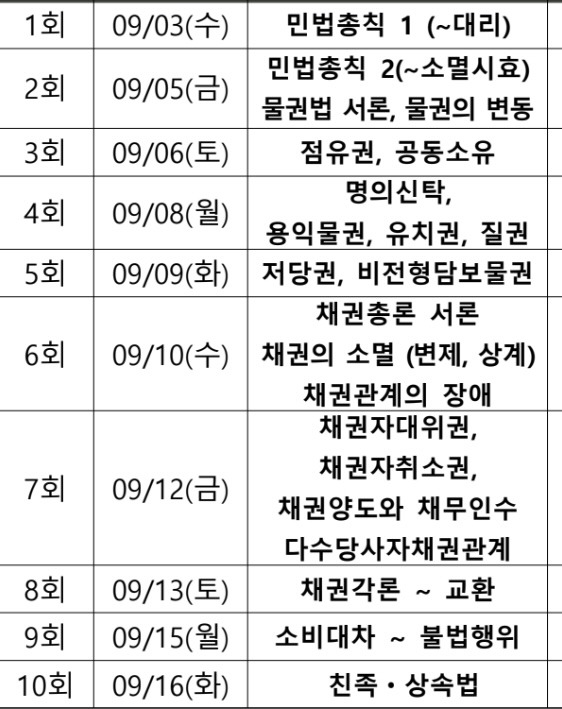 내일부터 민법 주간이 시작된다.