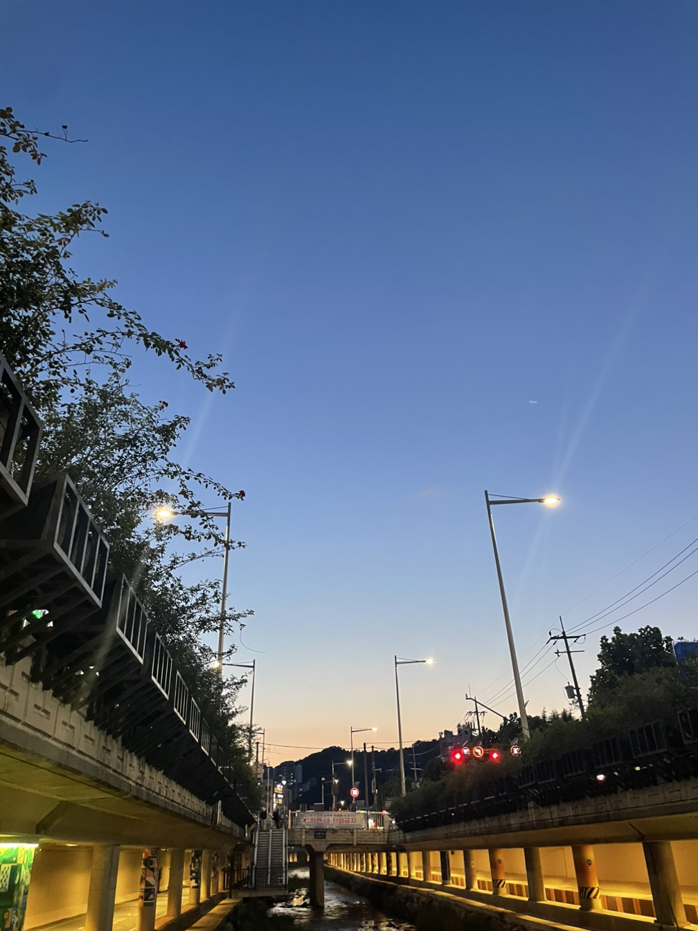 그냥 폰으로 찍어서 빛 번짐이 심하지만 빛이 번지면 빛이 번지는 대로 도림천의 밤 사진은 예쁘다.
