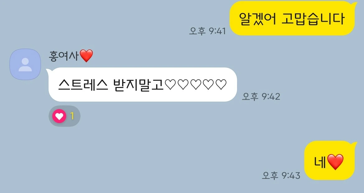 엄마는 평소에 안 쓰던 하트까지 붙여서 스트레스받지 말라고 했다.