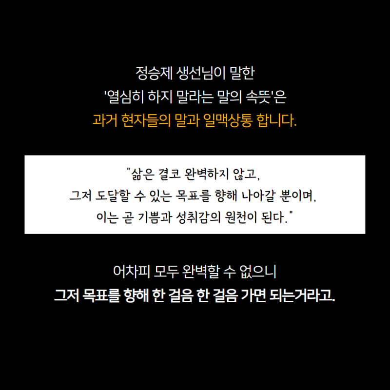 맞아.. 나는 그저 도달할 수 있을 목표를 향해 매일매일 묵묵히 그냥 하면 되는 거다. 잘하려고 하지도 말고 열심히 하지도 말고 그냥 하면 되는 거다. 그 시간들이 쌓이면 나는 어제보다 오늘 더 단단해지고 깊어질 것이다. 그냥 하자...