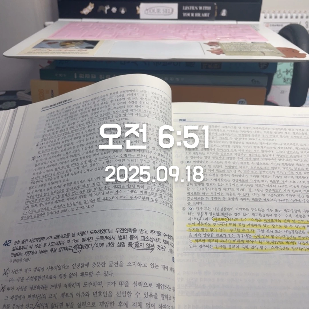 집으로 돌아와 계속 형사소송법 객관식을 풀었다.