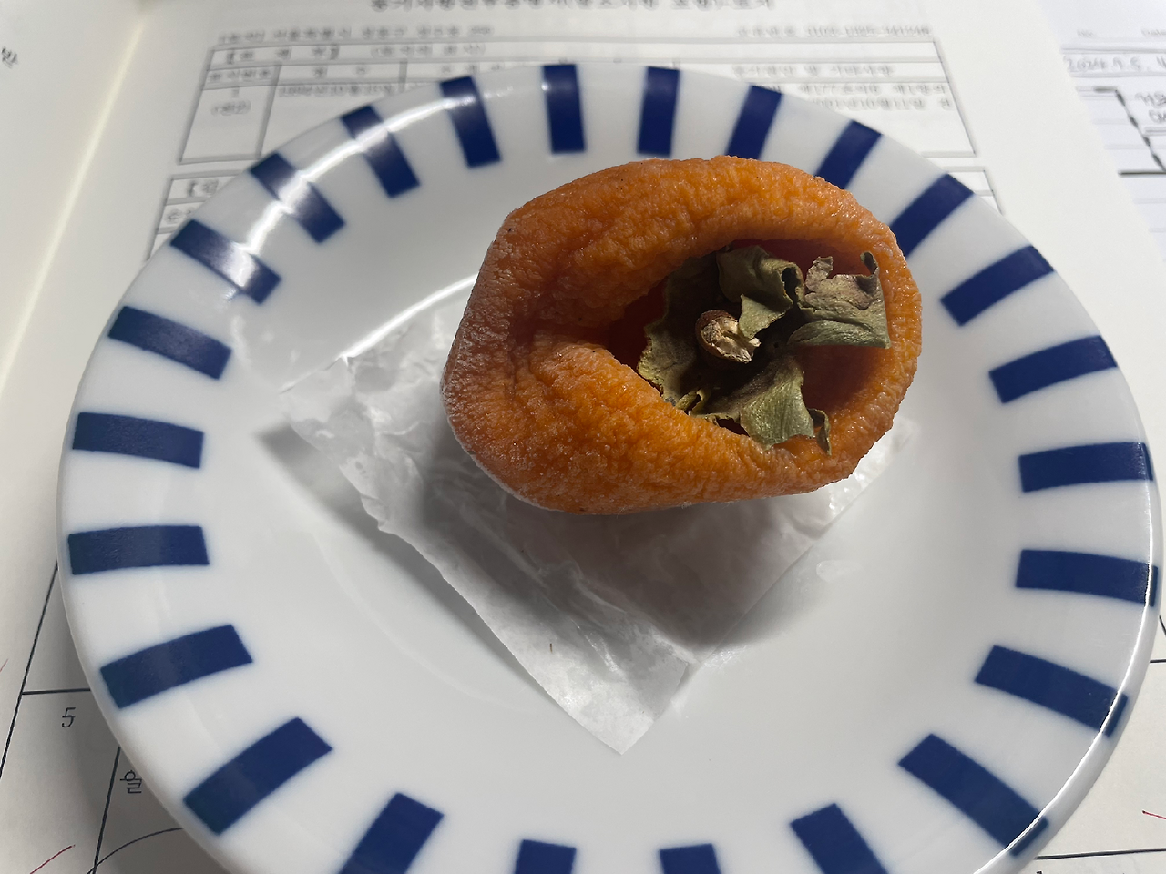 냉동된 곶감. 녹이는 중…