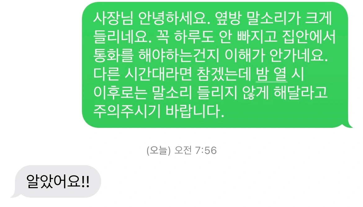 임대인 아재가 문자 계속 씹더니 처음으로 답장보냄.