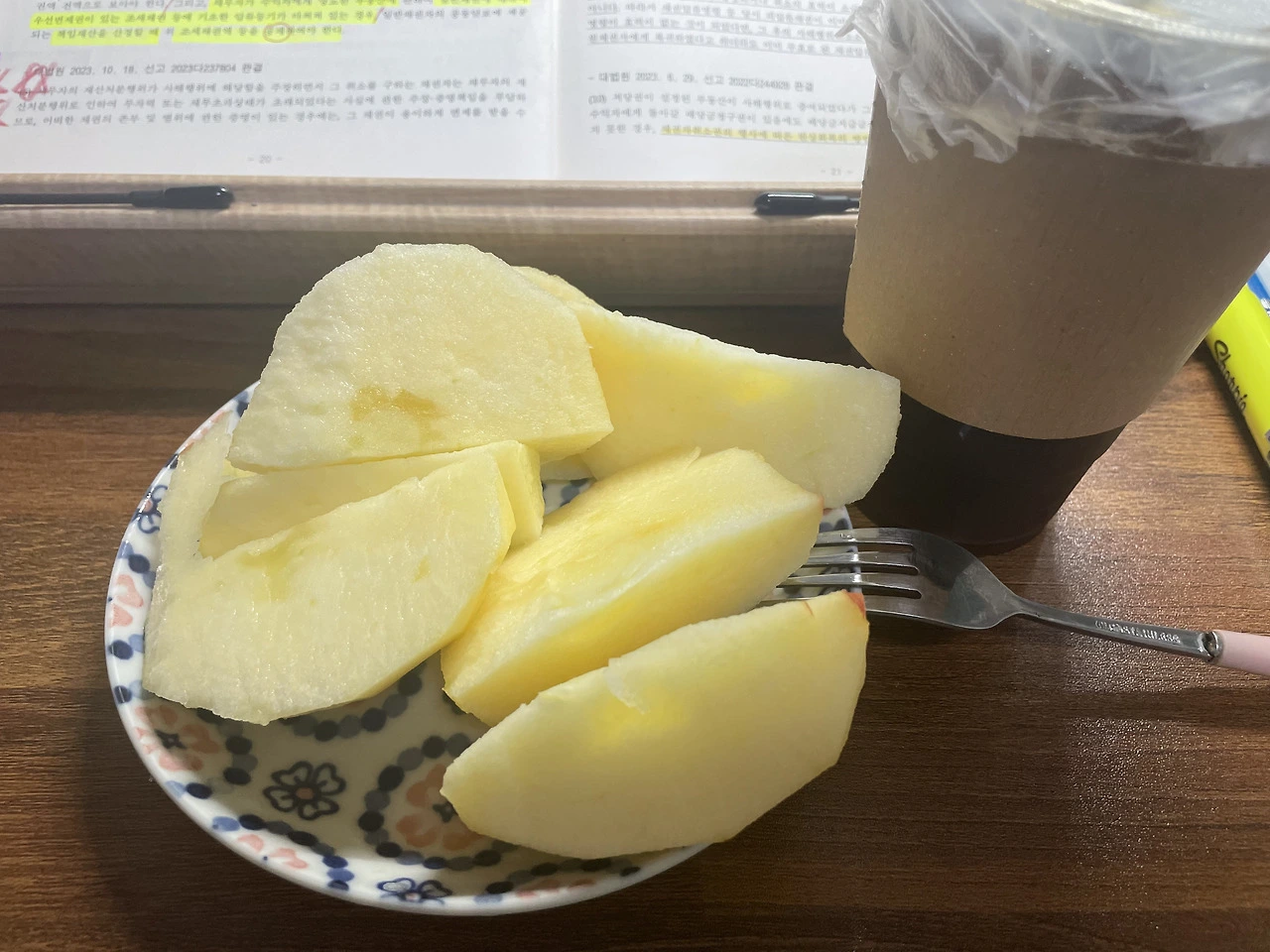 사과 깎기 귀찮았지만 귀차니즘을 극복하고 사과를 깎아서 먹었다.