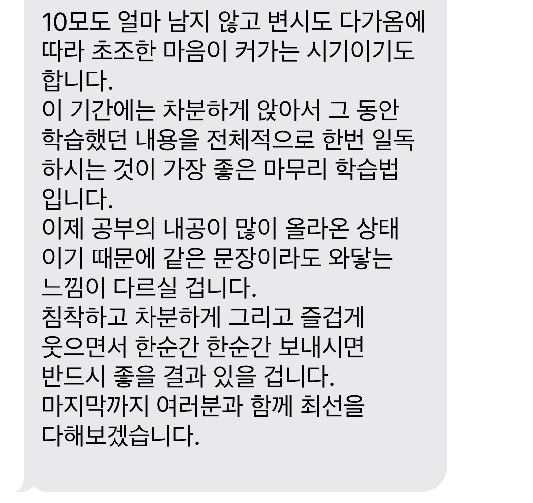 학원 전체 공지 속 강사님의 말씀.