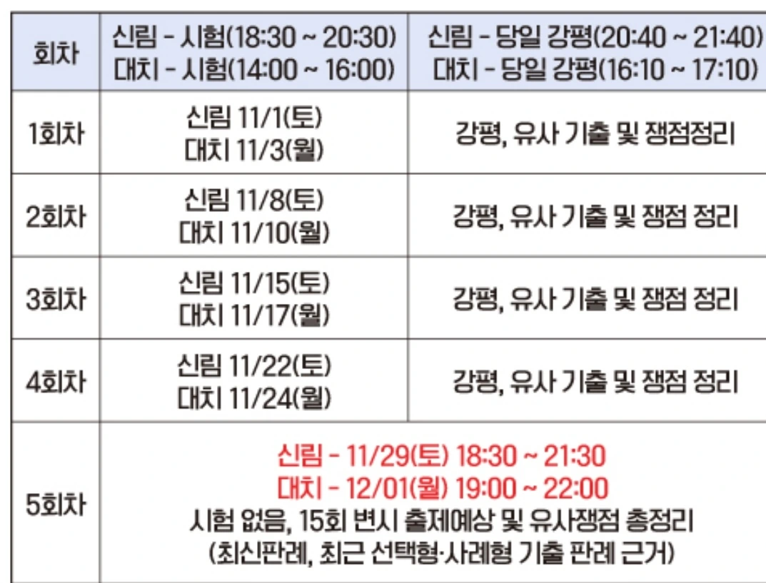실전과 비슷하게 시간에 맞춰서 문제를 풀 수 있어서 형사기록, 민사기록 둘 다 들으려고 한다. 11월과 12월 주말은 이렇게 기록형 시험을 보며 보내게 될 거 같다.