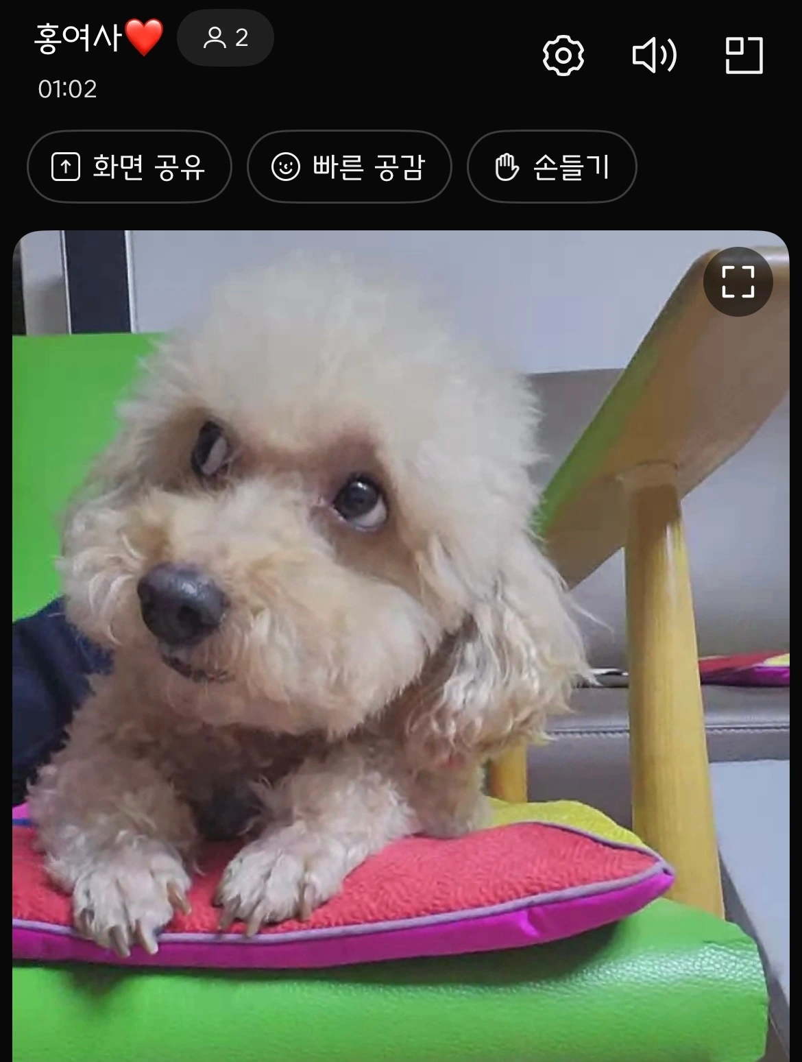 마지막으로 영상통화 속 강아지 사진으로 글을 마칩니다 ㅎㅎ