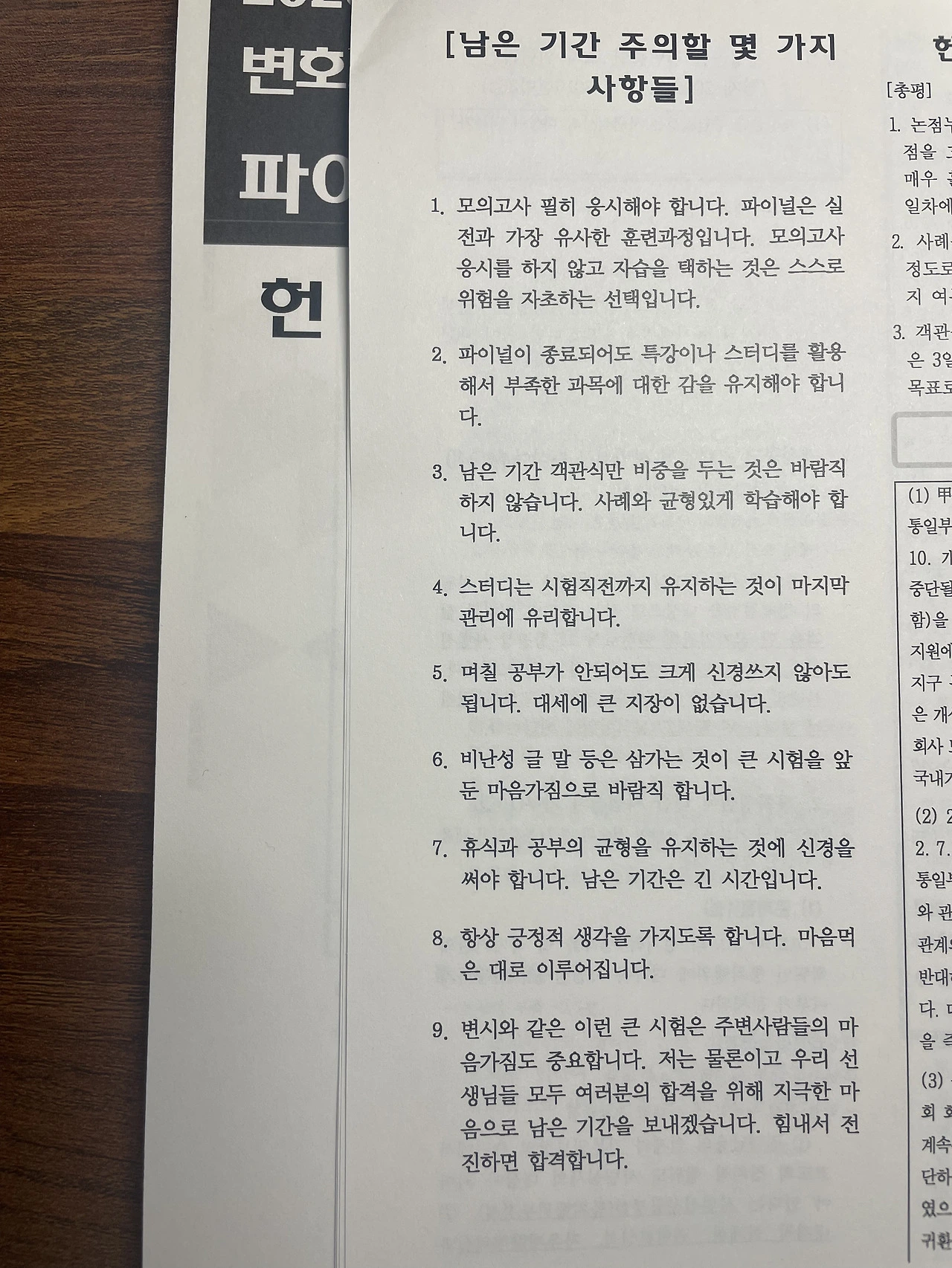 어제도 잠이 안 와서 아주 늦게 잠들었지만 다행히 아침에 알람 소리를 듣고 눈이 번쩍! 떠졌다. 학원에 가서 시험을 봤다. 학원에서 시험을 매일 보는 것이 생각보다 체력소모가 많이 되지만 매일 시험을 보는 것의 극장점은 본시험에서 뭐라도 쓸 수 있게 된다는 것이다. 하하.