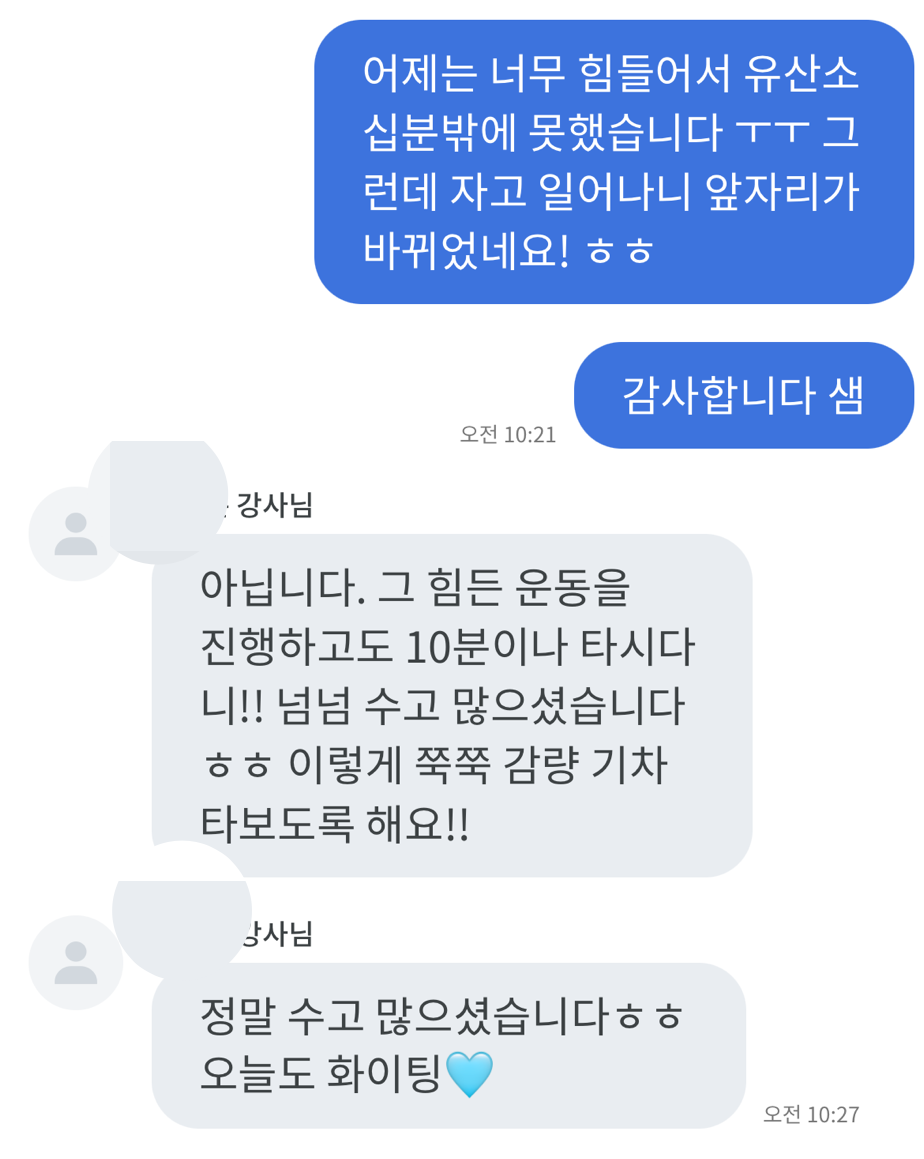 한 가지 운동을 할 때마다 정말 힘들었다.. 분명히 삼 년 전에 했을 때는 시간을 재서 다섯 가지 운동을 한 번에 할 만큼 체력이 좋았던 거 같은데 이렇게 체력이 떨어지다니.. 충격적이었지만 시키는 대로 열심히 했다. 여성 트레이너 선생님과 운동을 하고 있는데 몸이 정말 좋으셔서 동기부여가 된다. 엄청 꼼꼼하게 자세를 잡아주시고 기구 설명을 해주셔서 나중에 혼자서도 잘할 수 있을 것 같다. 좋은 선생님을 만난 거 같다.