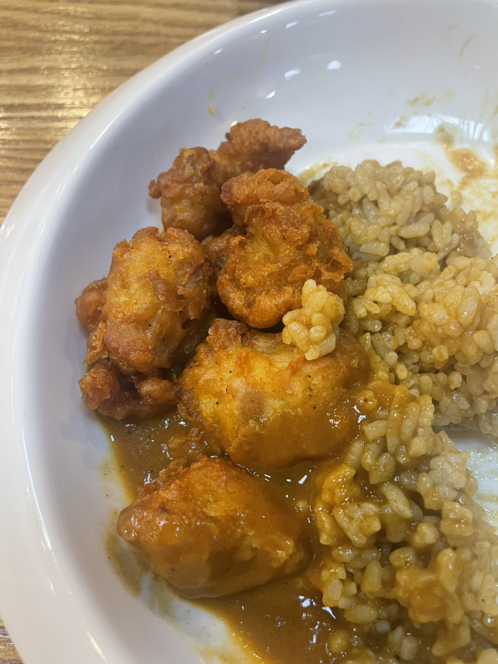 병원에 갔다가 밥을 먹으러 갔다. 뭘 먹을까 신중하게 고민하다가 가라아케 카레를 먹기로 했다. 가라아케 카레가 패스트푸드였던가? 거의 주문하자마자 식사가 나왔다. 냠냠.