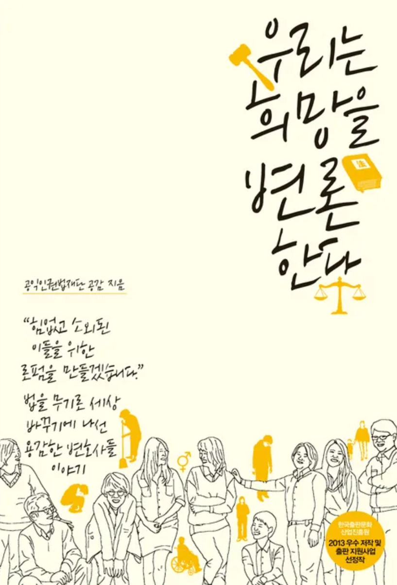 어느 날 일을 하는데 갑자기 캄보디아에서 감명 깊게 읽은 책이 생각났다. 우리나라 최초의 공익변호사단체인 공익인권법재단 ‘공감’의(홈페이지: www.kpil.org) 변호사들이 쓴 책인 ‘우리는 희망을 변론한다.’이다.