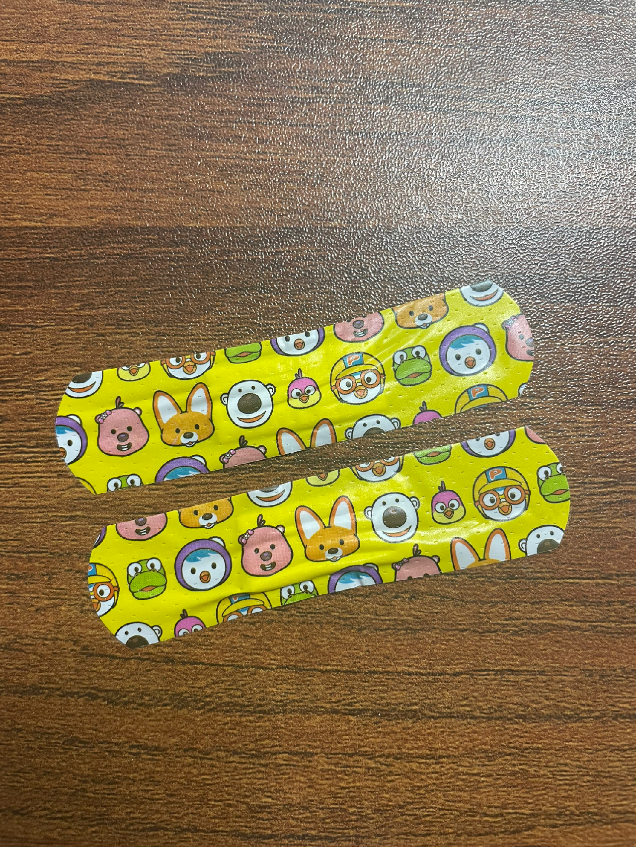 반스 슬립온을 처음 신으면 발 뒤꿈치가 까져서 길들이는 시간이 필요하다. 양말 안에다 붙이는 거라서 밖에서는 안 보이지만 붙이고 뗄 때 기분이 좋으니까 귀여운 뽀로로 키즈밴드를 사서 붙였다. 내가 좋아하는 노란색!