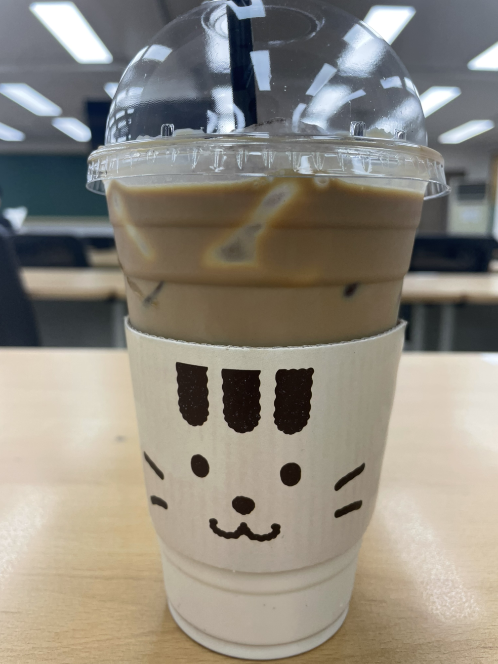 특강에 가기 전 평소에 안 가본 카페에 들렀다. 아이스 카페라테 나왔습니다~ 컵홀더가 너무 귀엽잖아!! 너는 줄무늬 고양이니??