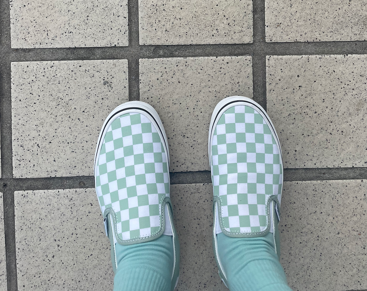 거의 맨날 신던 검은색 반스가 다 해져서 새로 산 민트색 반스. 신발에 맞게 민트색 양말을 신었다. 오늘따라 발걸음이 가벼웠다.