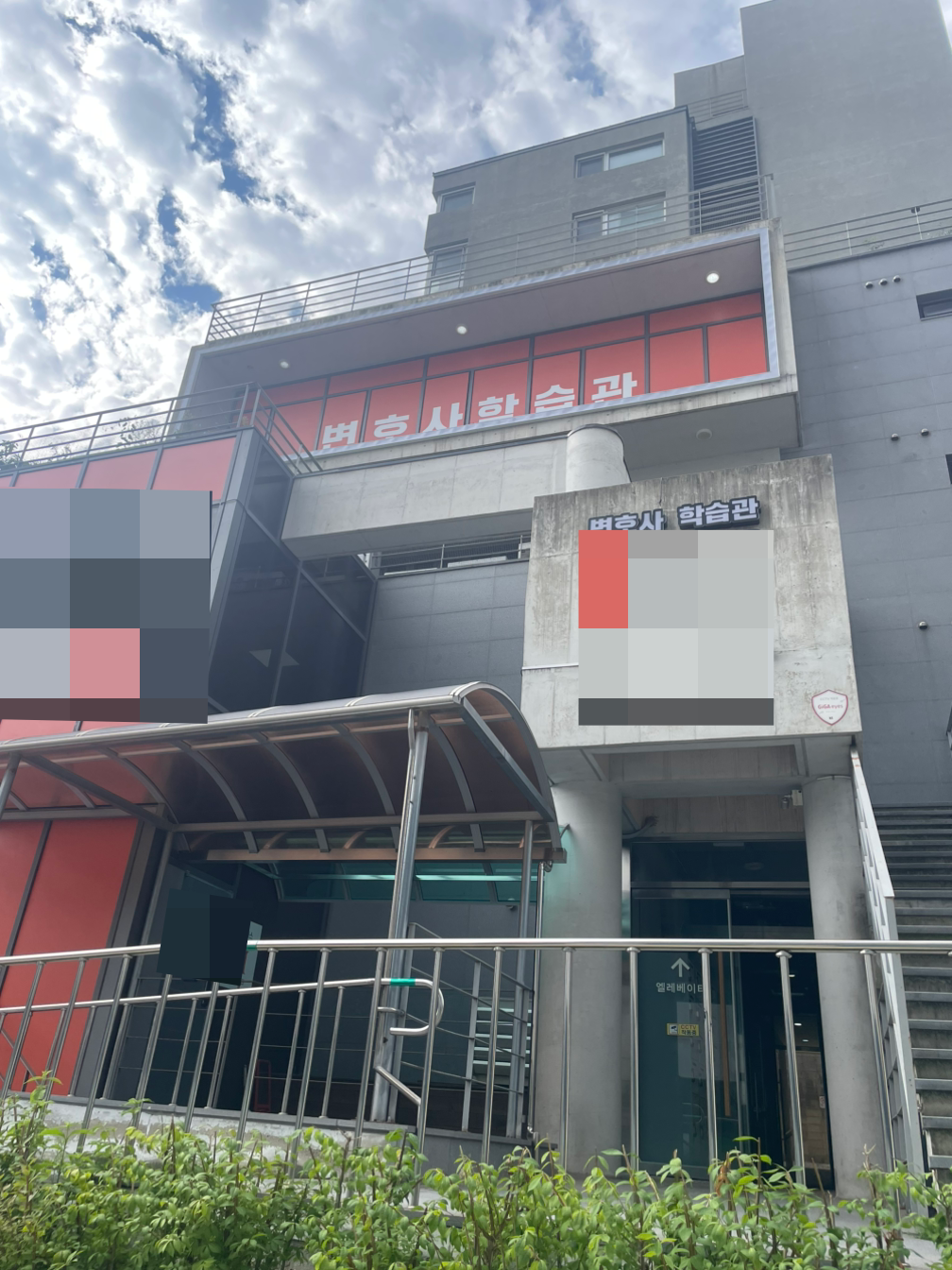 학원이 있는 건물은 1층은 음식점, 2~4층은 학원, 5~7층은 원룸이다.