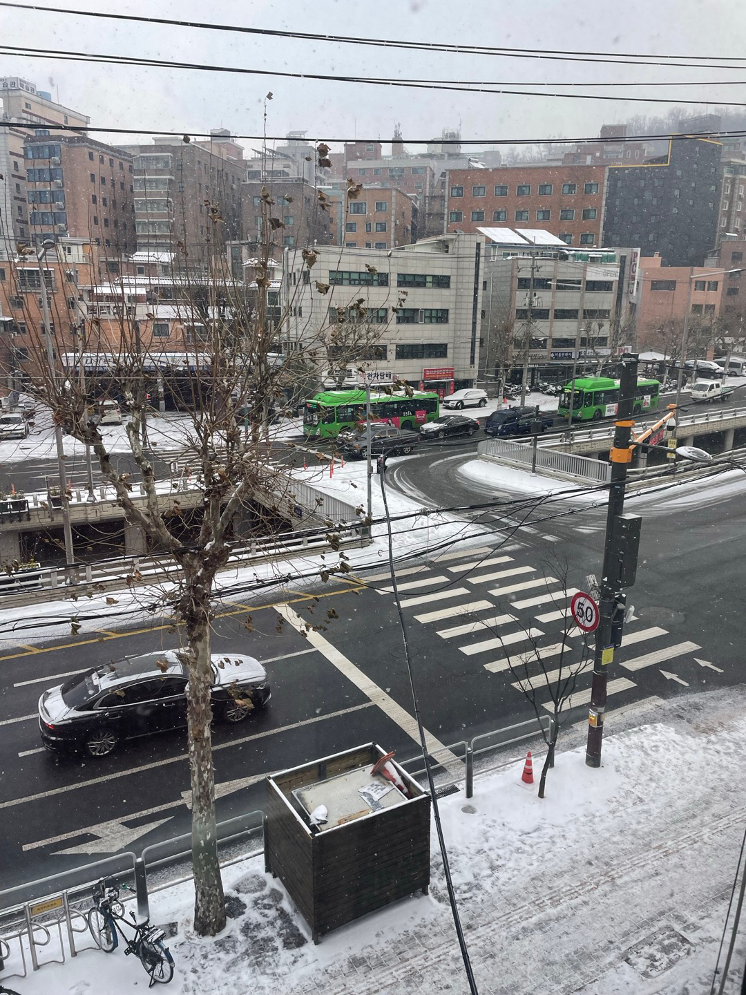 학원 특강을 듣고 나왔는데 눈이 펑펑 내리고 있었다.