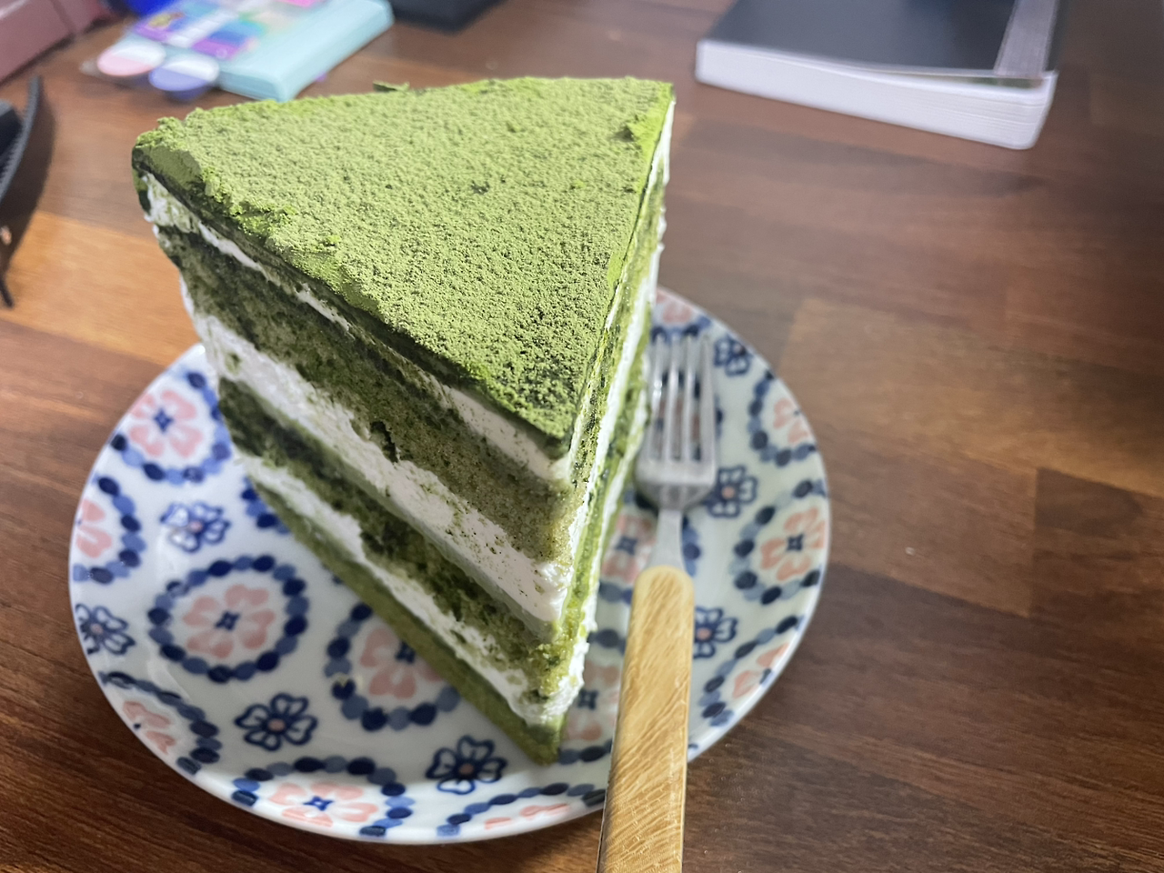 어제 저녁에 말차 케이크를 먹었다(주말은 맛있는거 먹는 날!) 주중에는 학원 밥시간에 맞춰서 밥을 먹어야 해서 항상 쫓기는 기분인데 일요일에는 여유롭게 밥을 먹고 집에서 공부하면서 디저트도 먹을 수 있어서 정말 좋다.