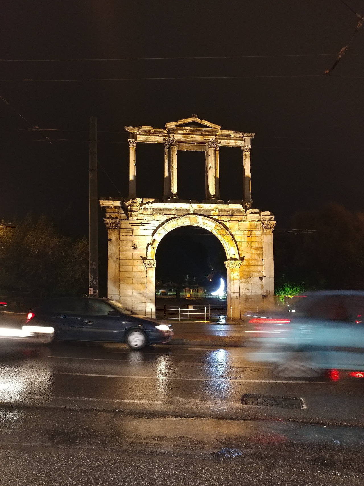 그리고 또 무슨 객기가 돌았는지 와인 한잔에 제대로 취한건지 그냥 쳐 들어가서 자야되는게 맞는데.. 비맞고 아침부터 돌아다니다가 버스에서 시달렸는데 피곤하지도 않은지 구태여 또 이걸 보겠다고... 힘들게 걸어온 호텔을 지나쳐서 큰 길가까지 걸어나갔다. 그냥 뭐랄까 며칠 전 도보투어할때는 가이드 언니(인지 동생인지 친구인지)만 따라만 다니다보니 어디가 어딘지 몰랐는데 이렇게 부근에 있음을 알고, 그리고 나 혼자 찾아왔다는 것이 굉장히 신기했다랄까? 그리고 왠지 모를 그냥 또 봤다는 데서 느껴지는 반가움? 하드리아누스의 개선문님하에게 신고하고 싶은 마음? 알딸딸한 기분으로 "나 펠로폰네소스 다녀왔어. ^_^"라고... 하.. 취했네 취했어. 그나저나 이렇게 밤늦게 혼자 돌아다니는 거 옳지않아. 아무리 관광지라지만 정말 정신줄을 놨었구만.