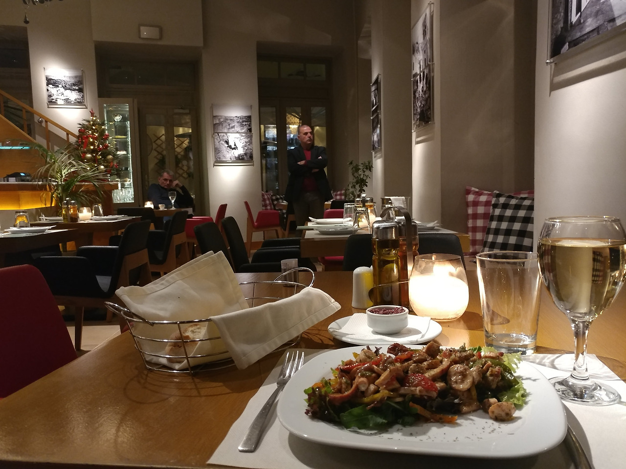 근데 무슨객기가 돌았는지 와인까지 시켰다. 분위기에 취한게 바로 이런것인가요? 무언가 술 한잔을 하게 만드는 분위기.. 그렇다면 성공하셨습니다. 그리고 문어랑 식초랑 비빈 요망한 요리를 시켰다. 다른데서 먹고다니던 것, 일명 식사들은 팔지 않는 듯 했다. 그냥 술을 먹기 위한 안주중심으로 영업을 하시는 듯.