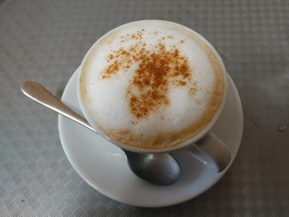 올리브 박물관 관람을 마치고 버스터미널로 복귀했다. 맡겨두었던 배낭을 찾아서 대기실로 향했다. 비는 계속 추적추적 내리고 우아하게 카푸치노 한잔을 테이블에 올리고..... 신발을 벗고 양말도 벗고 양반다리를 하고 앉아있었다. 3시5분 출발이라고 하니 아직 떠나려면 2시간은 남았소.