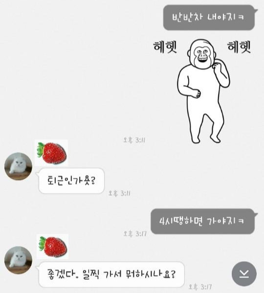 "딸기야 그래서 오늘 언제끝나? 저녁이라도?"