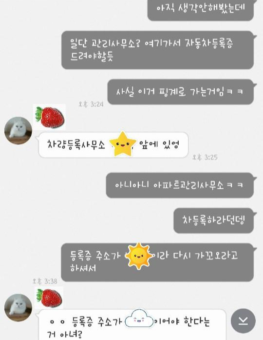 새로운 아파트로 이사한지 얼마 되지 않은 오렌지는 관리사무소에 가서 차량등록을 해야했다. 관리사무소는 6시면 업무종료라 퇴근하고 가면 너무 늦어서 계속 불편하게 다니고 있던 차였다.