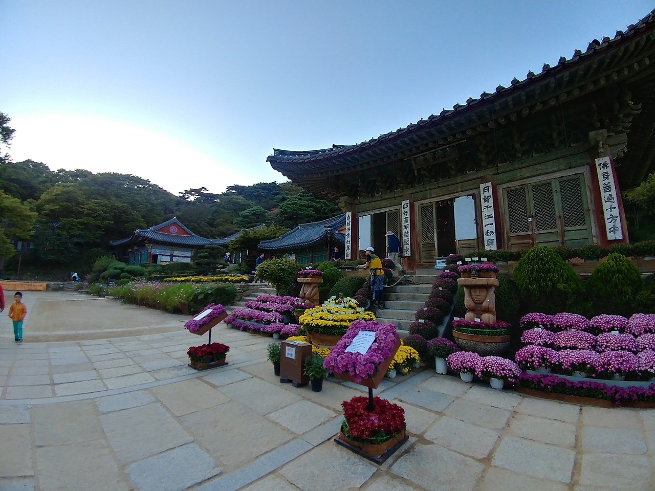 꽃에 물을 주는 관리인을 피해 대웅전 사진도 찍어주고 이곳저곳 입장료가 아깝지 않게 약사전이니 삼성각이니 구석구석 누비고 돌아다니다 대웅전이 보이는 곳으로 다시 돌아와 부근 벤치에 자리를 잡고 앉았다.