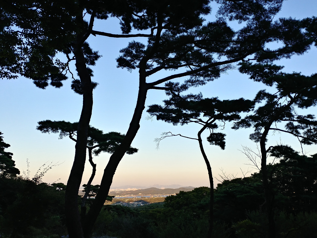 비교적 평탄한 언덕산길을 꽤 올라서 문화재구역(?)으로 들어선다. 은행x2배를 공물로 바치라는 탐관오리의 횡포가 발생하자 부처님의 은덕으로 그때 이후 은행이 1도 열리지 않는 은행나무도 지나고, 새삥한 건물에 들어가서 그림도 보고 구석에 있던 정수기에서 꿀맛 냉수도 들이키고, 정족산서고(x) 정족산사고(o)도 (문이 닫혀있어서 문틈사이로) 구경하고 했다.