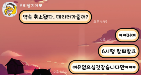그리고... 자라ㅋㅋ길래.. 싫다는 이모티콘을 보내던 도중 발생한 대참사