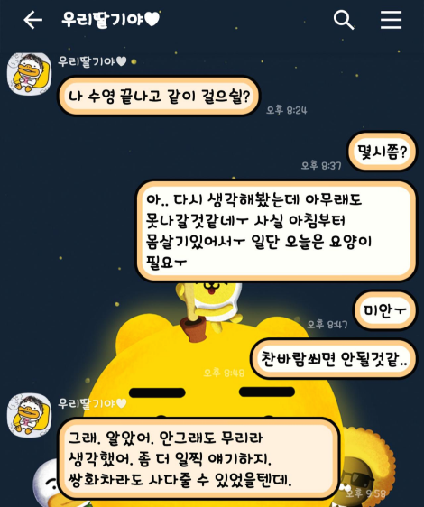 생강차랑 오뎅을 사서 문고리에 걸고 도망가는 불굴의 딸기씨