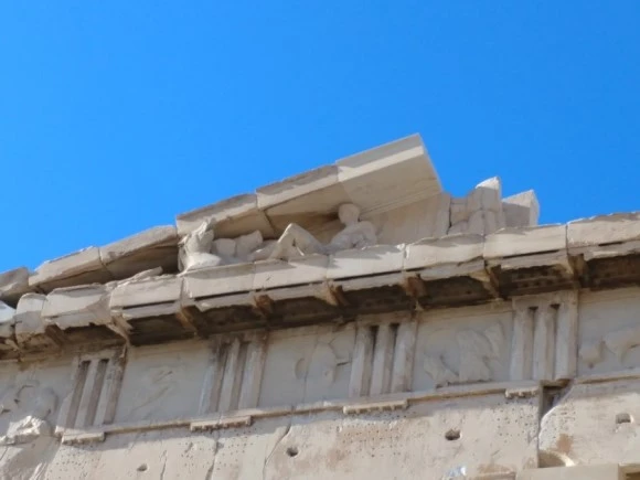 참고로 사실 이부분은 실제 파르테논 오리지널 신전에 일부 구현을 해 놓았다. 역시 가품이다. 사실 당시에 파르테논에서 올려다 볼 때는 당연히 이것도 진품인줄 알았는데.. 이것저것 뒤져보니 아직 저 부분도 대영박물관에 그대로 있는 사진을 보고 등 뒤에서 땀이 아주 심하게 났다. 지금 또 사진을 자세히 보니 베이지톤이 아닌 복원의 색인 흰색을 띄고 있네. 부끄러운 오스나씨의 얕은 지식.