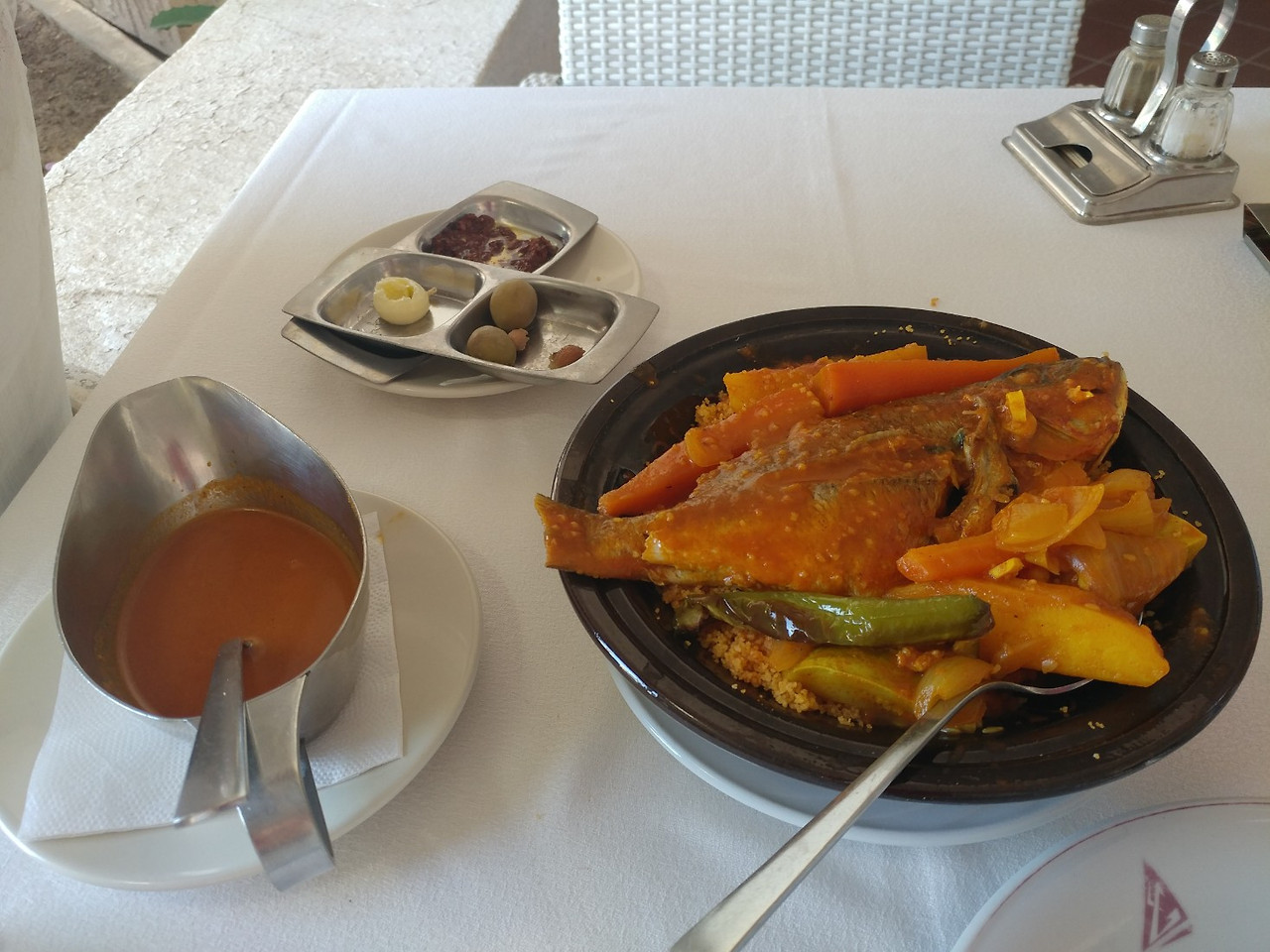 옆에서 식사를 하던 서양인 부부중 남편이 '저게 꾸스꾸스야.'라고 부인에게 얘기해주는 것 같다. 흘낏보니 그들은 아쥬기냥 해산물 파티를 하고 계신다. 맛나게 드십셔~!
