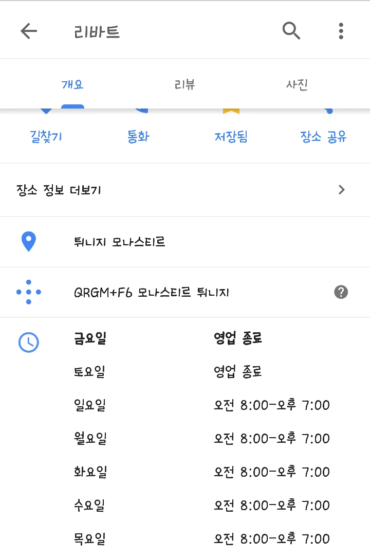 이제 슬슬 돌아갈 시간. 아까 계획했던 대로 관리인에게 구글지도의 리바트 오픈시간을 보여주며 얘는 미쳤어 해준다. 그도 팔짝 뛰면서 이거 보라고 일주일 내내 운영한다고 진짜 미쳤네 하는 반응이다. 구글에 전화해. 고쳐달라고 하던지라고 던져주고 리바트를 빠져나왔다.