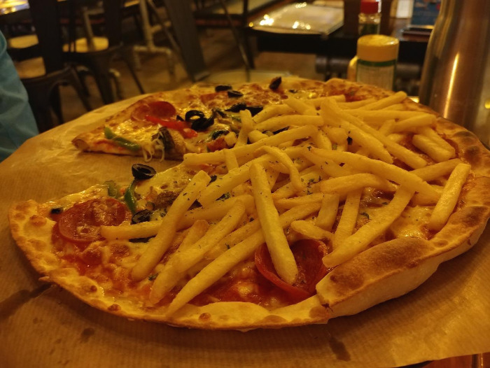 우린 그날 동네 복귀해서 피자를 먹었지.