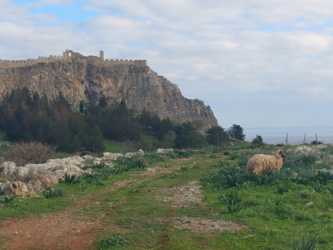 동상과 마을쪽을 바라보고 오른쪽으로 좀 가보기로 했다. 사유지같은 느낌도 들었는데 어설프게 나무로 울타리를 쳐 놓기도 했던 관계로. 근데 뭐 어차피 사람도 없고해서 훅 들어가본다. 염소인지 양인지.. 풀 뜯어먹고 놀고 있다가 나를 보고 저건뭐야 하고 한참을 째리더니 자리를 피해준다. 드러워서 피하...? 그렇게 시간도 좀 남았고 하니 인근을 좀 더 누비고 다닌다. 그냥 그런 농촌이다. 교회도 하나 있는 것 같았는데 유적지처럼은 안 보이는 새삥한 건물이었음. 로도스행 버스 출발 시간이 다가올때 쯤 정류장 부근으로 돌아갔다.