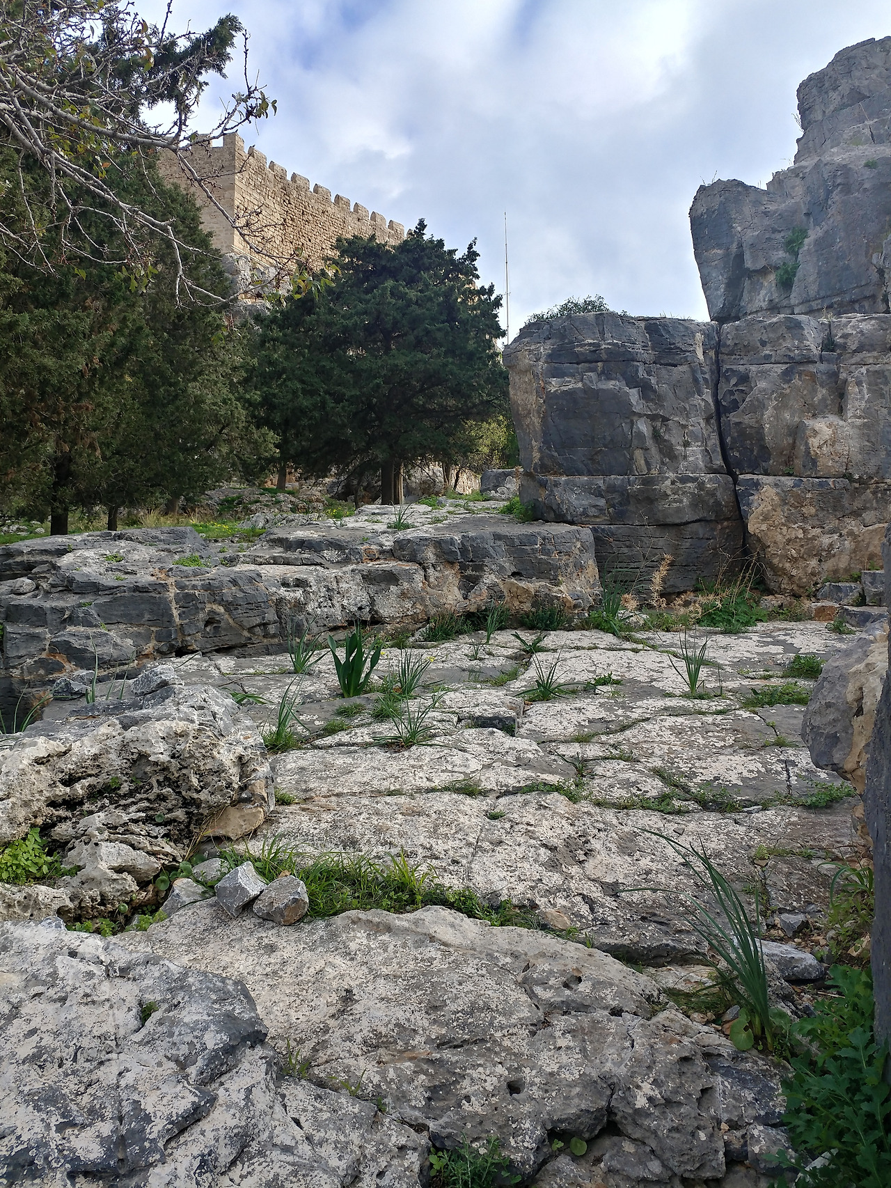 아크로폴리스 내부에는 아테나 린디아 신전, 기타등등 유적들이 있다고는 하는데.. 성벽으로 가로막혀 있어 나는 그저 성벽보다 높아 고개만 빼꼼 나온 기둥들만 바라만 볼 뿐 답이 없다.