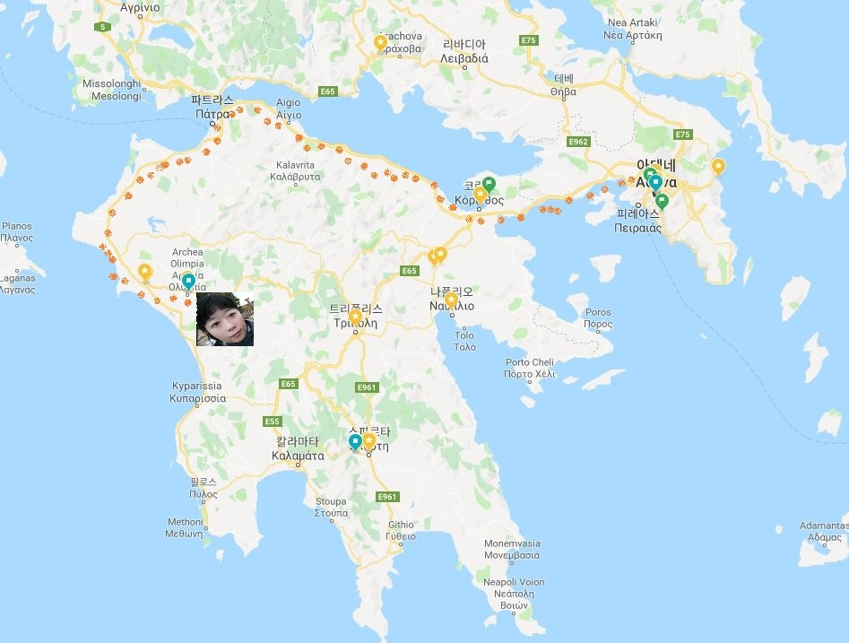 델피가는 방법도 적어주셨다. 루트는 올림피아-피르고스-파트라스-이테아-델피다. 하하하 너무 빡세서 포기하기로 한다. 거리상으로는 분명 가까워 보이는데 교통편이 뭔가 좋지가 않다. 델피는 나중에 기회되면 아테네에서 당일치기로 가기로 한다.