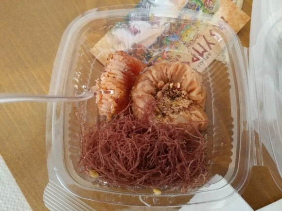 저녁은 아까 다 남긴 수블라키로 해결하기로 하고 포장을 부탁한다. 그리고 내일 아침 겸 간식겸으로 근처 제과점(?)에 가서 달달구리한것들을 골라왔다.