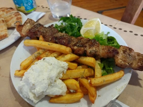 일단 빵만 두가지를 준다. 샐러드도 넘나 신선하고 치즈도 정말 후하게 올려주시고. 메인식사는 수블라키. 이후에도 계속 먹었지만 이렇게 야들야들 맛났던 것은 처음이었음. 다 먹고나니 구태여 괜찮다는 데도 커피를 마시고 가라며 한잔 주셨다.