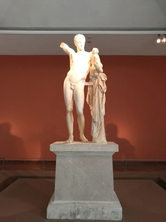 헤르메스와 어린디오니소스. 이것도 해석하는데 한참걸렸다. 헤르메스는 신들의 세계에서 마당쇠같은 존재다. 역시 제우스 지시를 받고 어린 디오니소스를 유모 님프에게 맡겼다고 한다. 잘린 오른팔은 포도나무를 잡고 있었다한다.