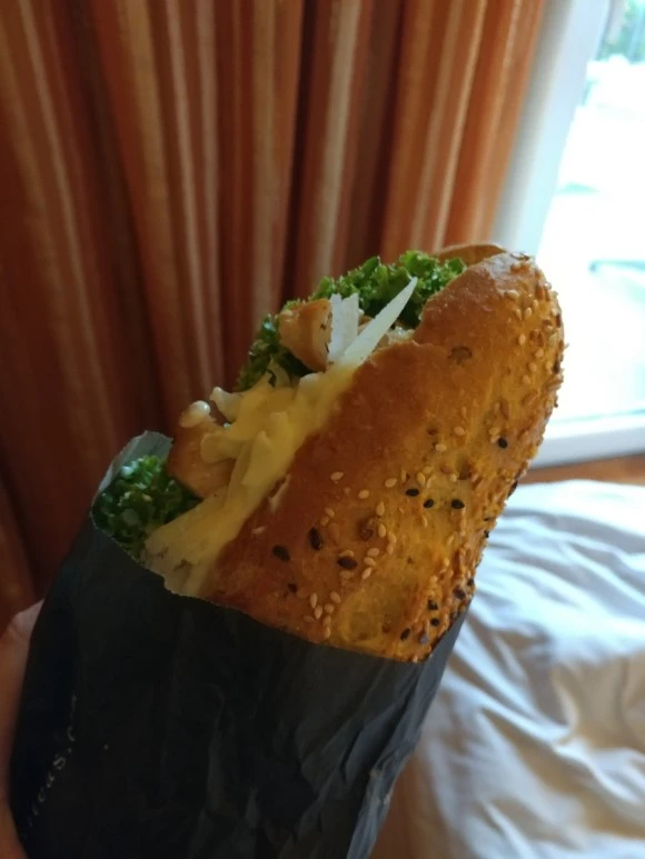 그냥 호텔로 들어가려다가 호텔 근처에 있는 베이커리로 들어갔다. 사실 첫날 도착했을때부터 봤던 곳이다. 샌드위치가 참 먹음직스러워서 유심히 봤었다. 이대로는 버스터미널까지 이동도 해야하고 하니 시간이 부족할 것 같아서 식당가서 뭔가를 먹는다는 것은 무리일것 같고 차라리 저걸 사가지고 호텔에 들어가서 먹으면서 옷도 말리고 신발도 말리기로 한다.