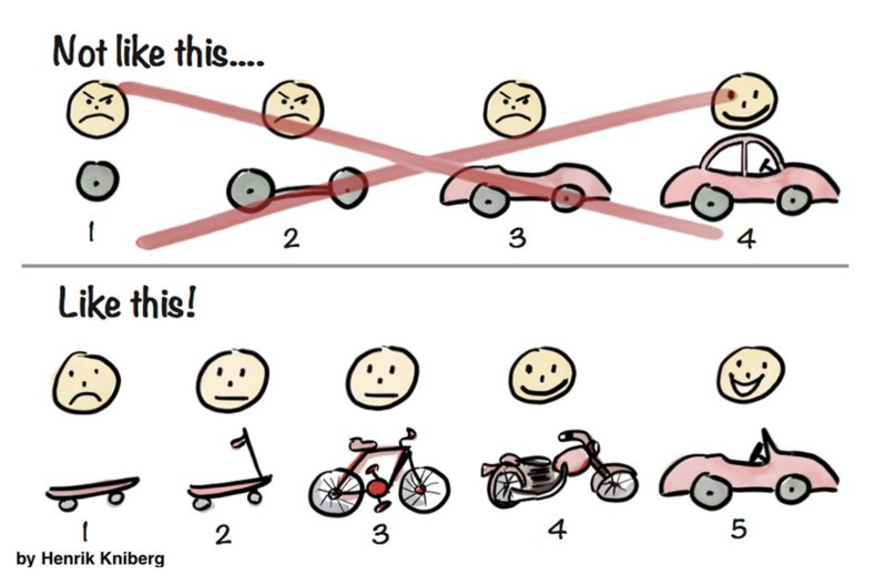 작은 사이클을 반복하여 최소 기능 제품(MVP : Minimum Viable Product)을 진화시켜 나가는 것