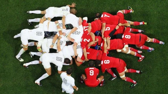 미식축구나 럭비에서, 쌍방의 팀에서 세 명 이상의 선수가 공을 에워싸고 서로 어깨를 맞대어 버티는 공격 태세. 반칙이 있을 때 심판의 명령에 따라 짜는 것으로, 쌍방의 전위로써 짜는 세트 스크럼과 편을 가리지 않고 짜는 루스 스크럼의 두 가지가 있다.