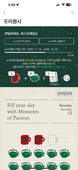 스타벅스 앱에는 다음과 같은 혜택이 있습니다.