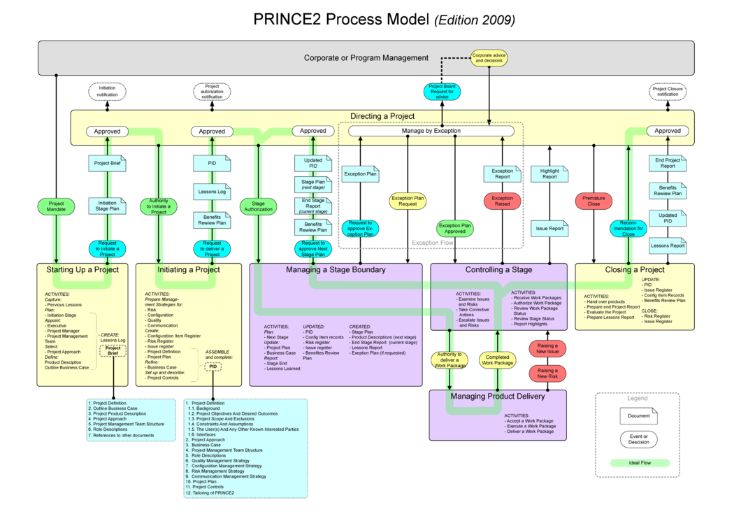 1989년 영국의 OGC(OfficeofGovernment Commerce)에서 개발되어 1996년 PRINCE2로 개정하였습니다. 원래는 IT프로젝트관리를 위한 영국 정부의 표준으로 개발되었으나 IT 이외의 프로젝트에도 확대적용하고 있습니다. 프로세스 기반 프로젝트 관리방법으로 8개의 프로세스와 45개의 활동으로 구성되어 있습니다.